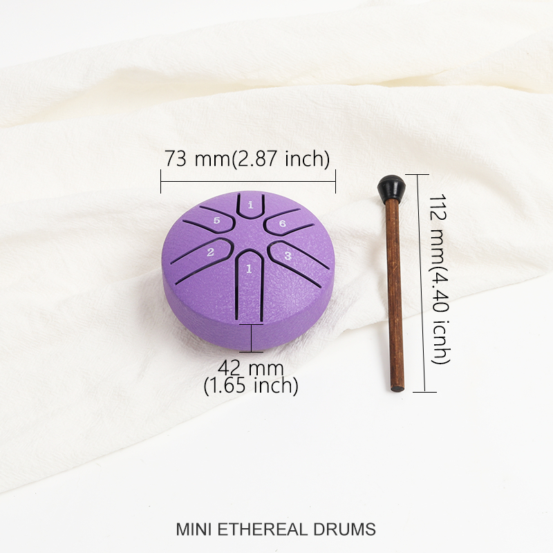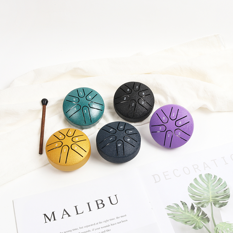 Drum Lidah Baja Ethereal 3 Inci 6 Nada - Drum Tangan Mini, Tank Drum, Alat Musik Perkusi dengan Mallet dan Buku Musik, A