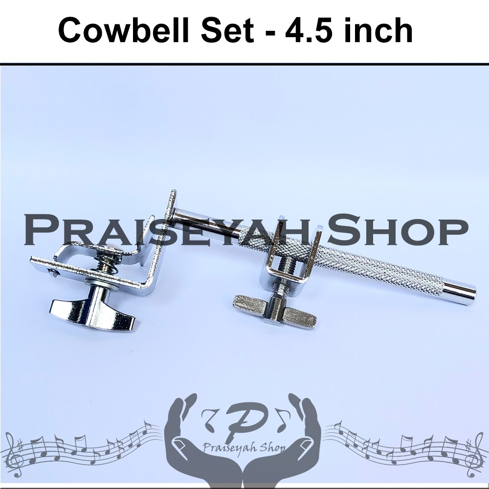 Cowbell Drum Perkusi Hitam 4.5" Include Holder Chrome