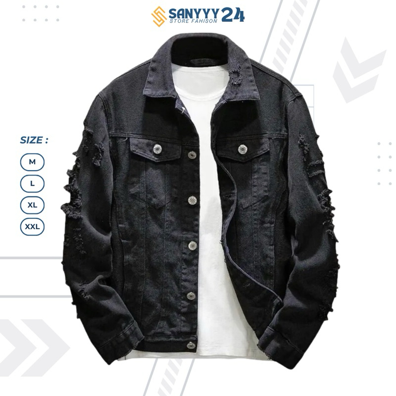 JACKET DENIM JEANS PRIA POLOSAN ELEGAN SOBEK NEW COLECTION JACKET DENIM
