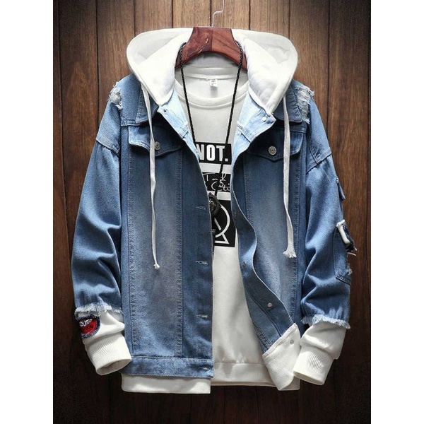 JAKET JEANS PRIA JAKET JEANS PRIA TERBARU JAKET LOGO JAKET EMBLEM JAKET SOBEK JAKET BOMBER Jaket korean style