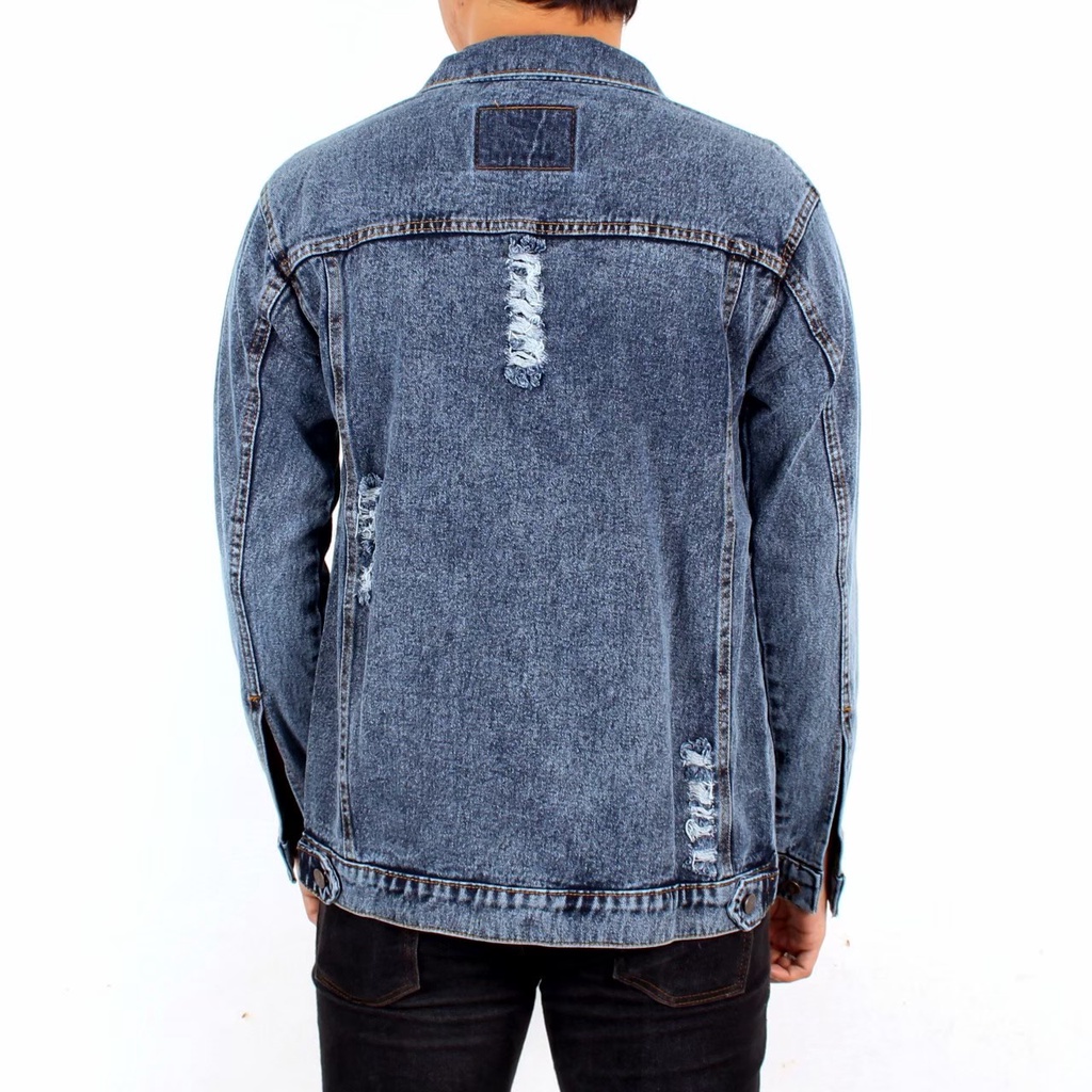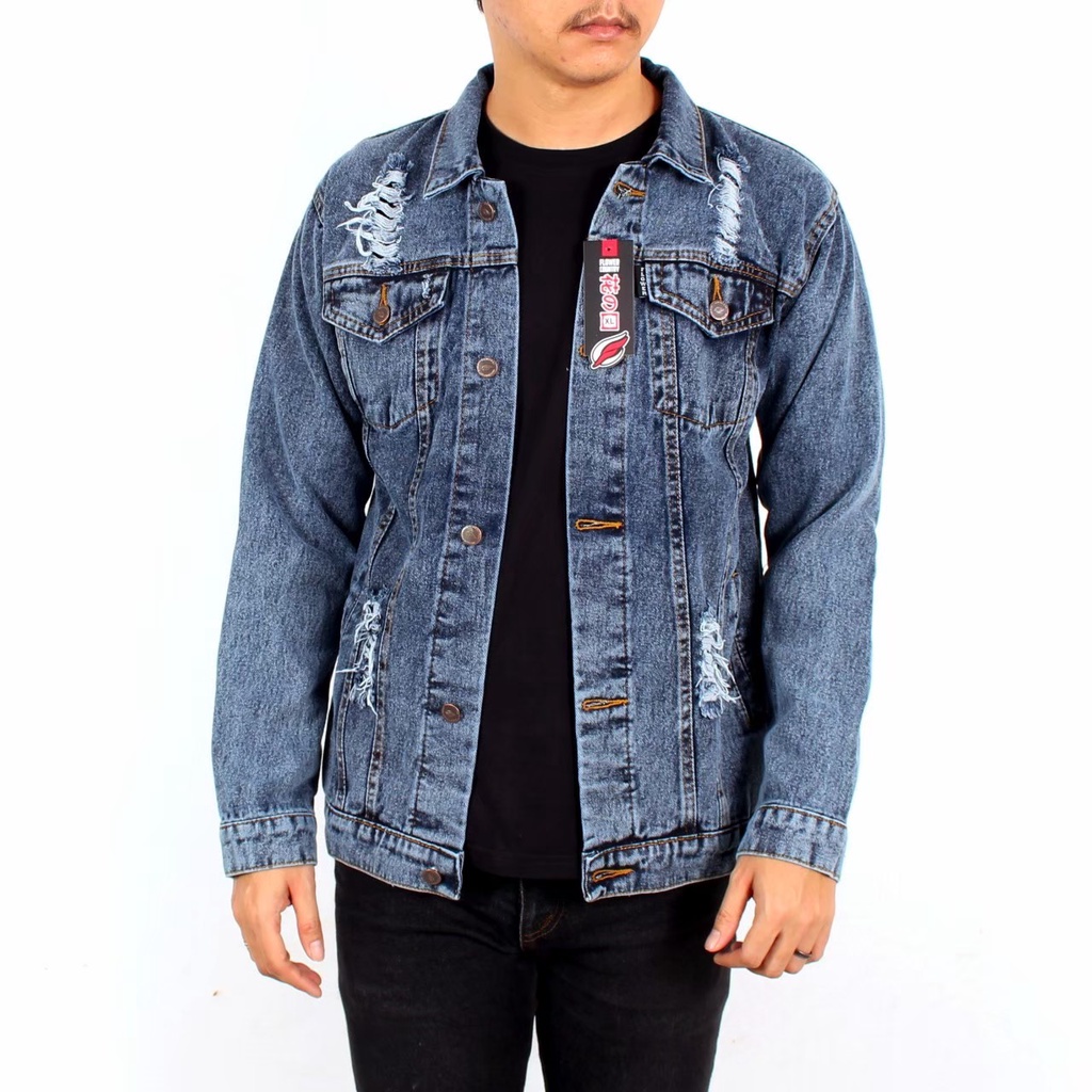 Jaket Jeans Ripped Pria Size M L XL Denim Basic Sandwash Sobek