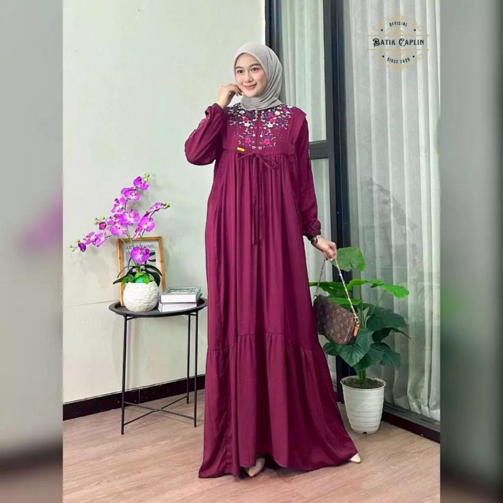 Batik Caplin - Amanda Maxi Dress Gamis Bordir Rayon Twill Premium 2026
