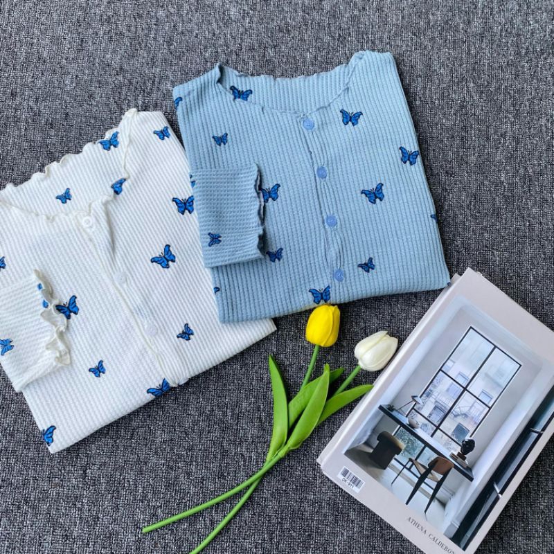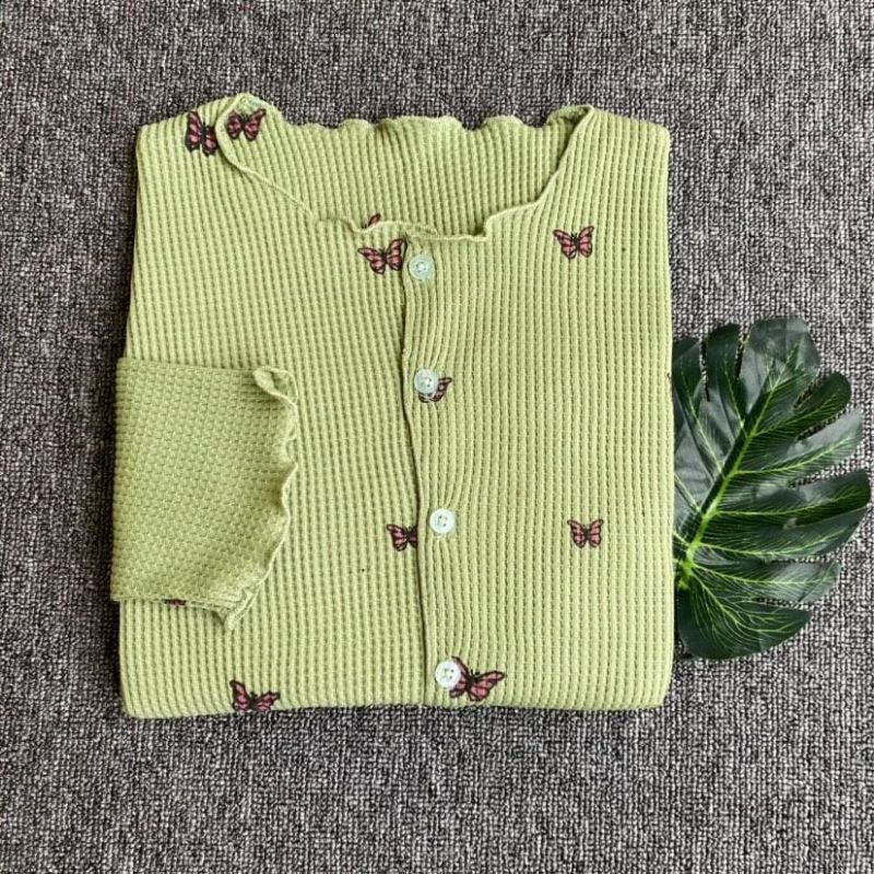 Cardigan Crop Rajut Wafer Motif Kupu Kupu