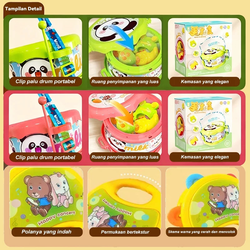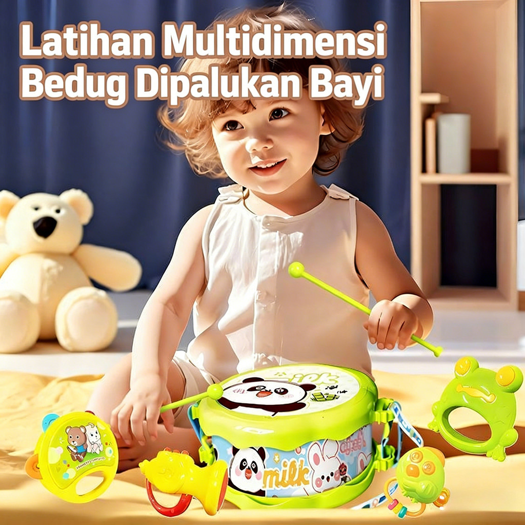[] Mainan Baby Drum Set 5 Pcs & Toy Edukasi Rattle Usia 0-6 Bulan, 1-3 Tahun Alat Perkusi Interaktif dengan Lampu & L