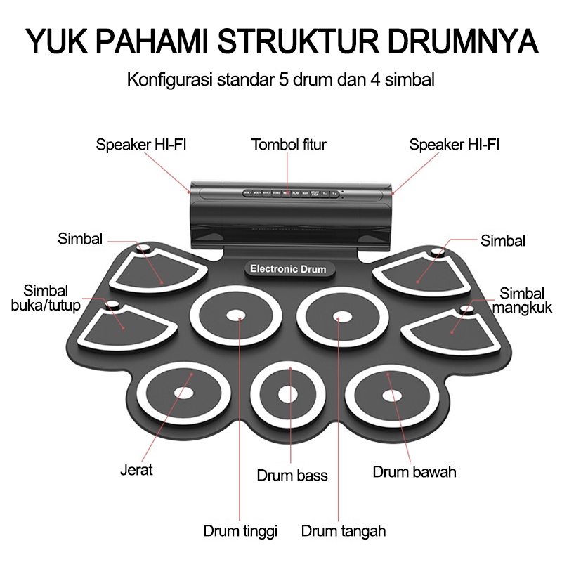 Benston Music- Set Drum/Set Drum Elektronik/Set Drum Set Lipat Nyaman/Set Drum Pemula Latihan Anak-anak