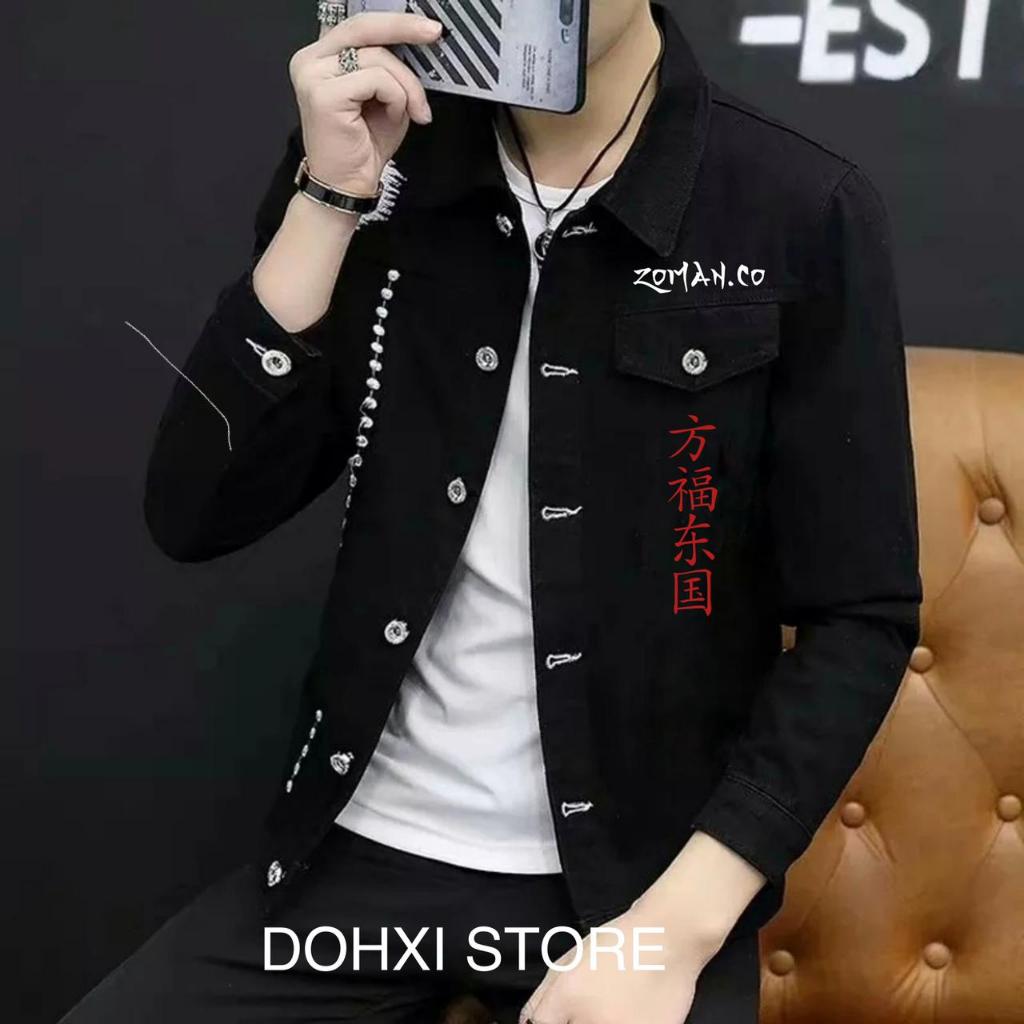Jaket Jeans Denim Hitam & Hitam Sandwash | Jaket Jeans Korean Style Motif Full Bordir Terbaru