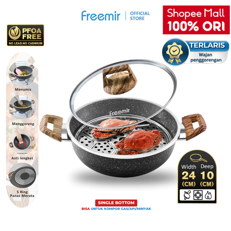 freemir Wajan Panci 24 CM Memperdalam Wajan Anti Lengket Wajan +Kukusan Serbaguna Granite