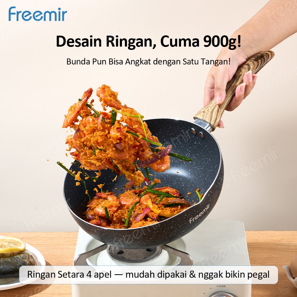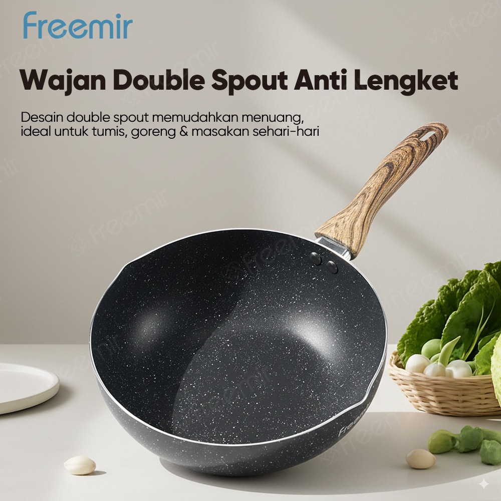 freemir Frypan Cekung 24 cm Anti Lengket Corong Anti Tumpah Anti Lengket Foodgrade Wajan Anti Lengket