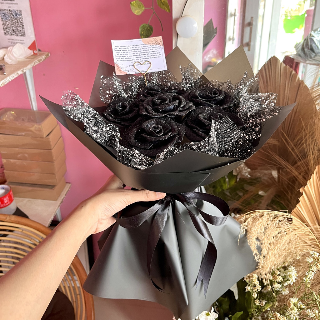 Buket Bunga Satin Hitam Graduation Hadiah Ulang Tahun
