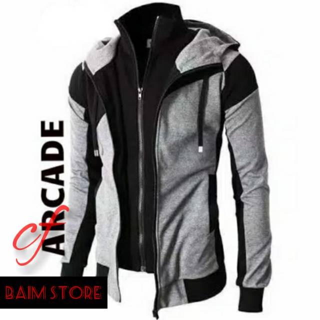 JAKET PRIA Trend Laki Laki Cowok Abu Hitam Merah Kombinasi is Trendy COUGLE F671