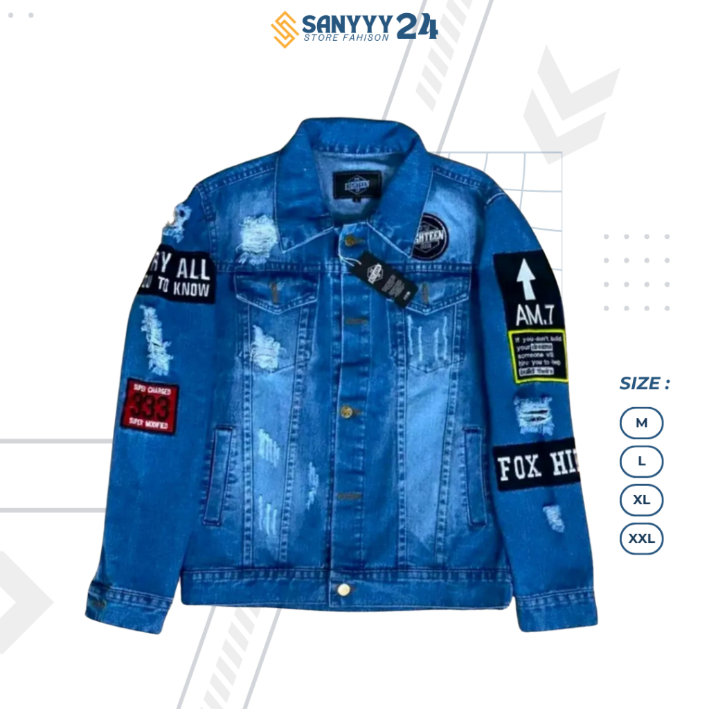 JACKET JEANS DENIM MOTIF SOBEK HIP HOP JEANS COWOK EMBELM