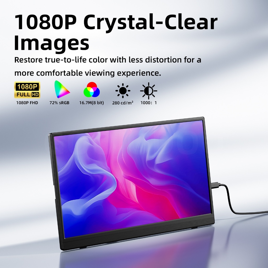GOOJODOQ RTABLE MONITOR FOR 72 PERSENSRGB LAPTOP 15.6'' 19201080P 4K FHD 178° WIDE-ANGLE IPS DISPLAY MONITOR FOR IPAD/PC/MAC/PHONE/XBOX SWITCH/PS4
