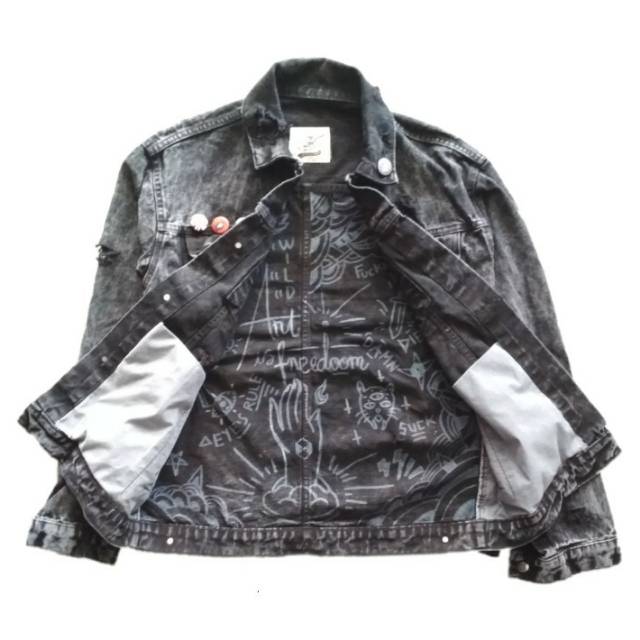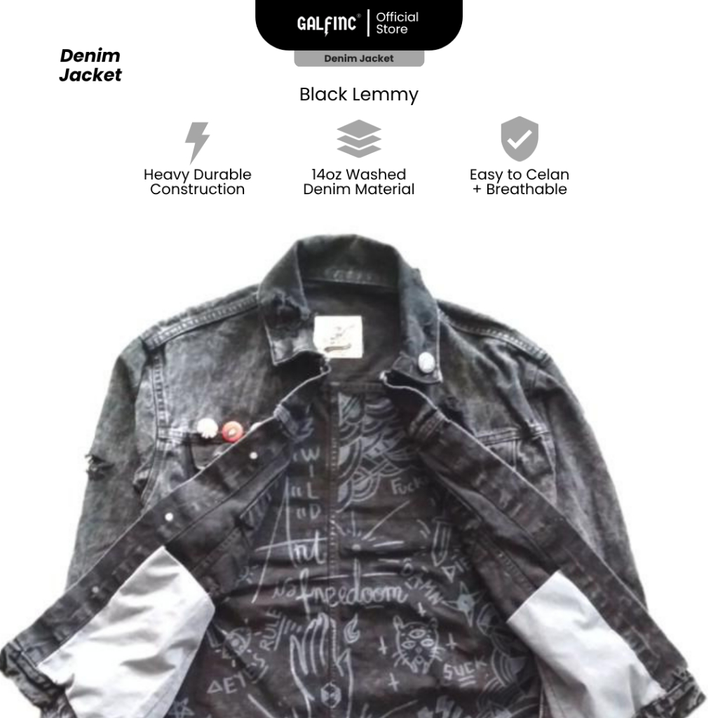 Galfinc Jaket Jeans Vintage Washing Custom Black Lemmy Extreme ripped