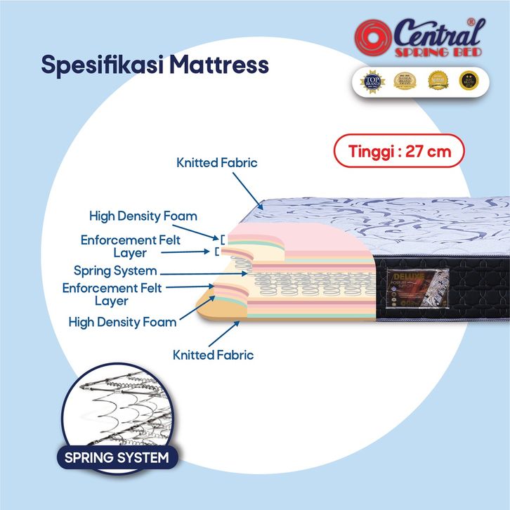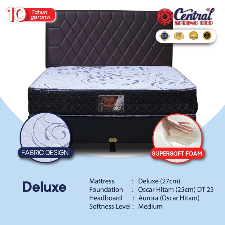 KASUR SPRINGBED CENTRAL DELUXE FULL SET DIVAN UKURAN 200X200 180X200 160X200 120X200 90X200 SPRING BED NO 1 2 3 FULLSET