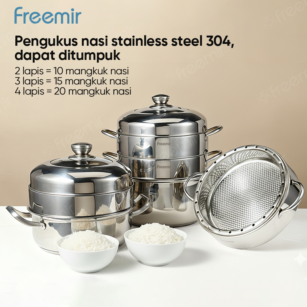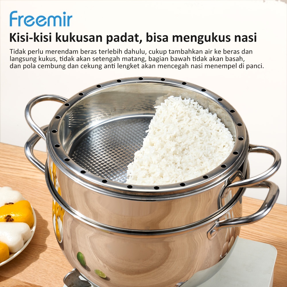 freemir 26cm Kapasitas besar multi-lapis Panci Kukus / Matang dalam 20 Menit Penanak / Kukusan panci