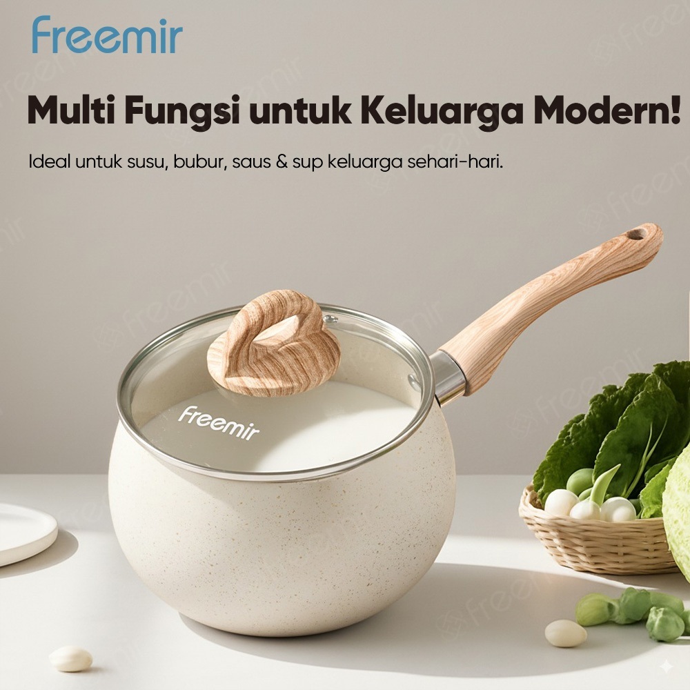freemir Panci Susu Anti Lengket Panci Mie Panci Serbaguna Panci Gemoy Aesthetic Double Bottom Pemanasan Merata