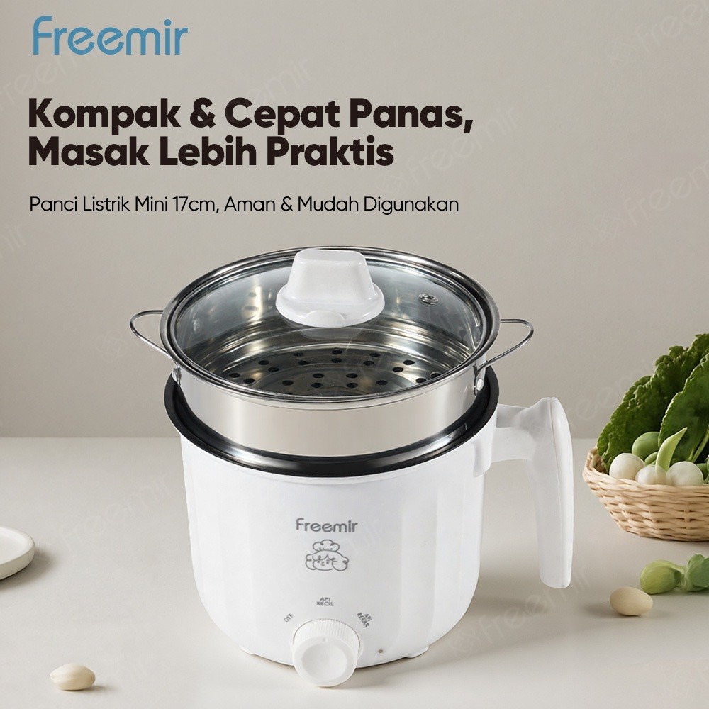 freemir Mini Electric Cooker White 1.2L Anti Lengket Pengukus Serbaguna Foodgrade panci listrik panci kukus