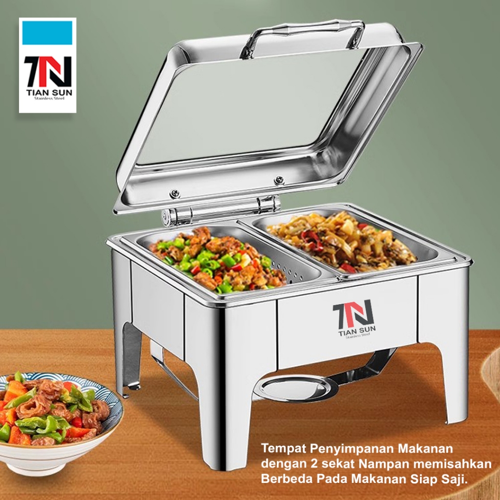 Tian Sun Chaving Dish Kaca Besar dan Penutup Hidrolik 90° / Rolltop stainless prasmanan 9L/13L & 6L