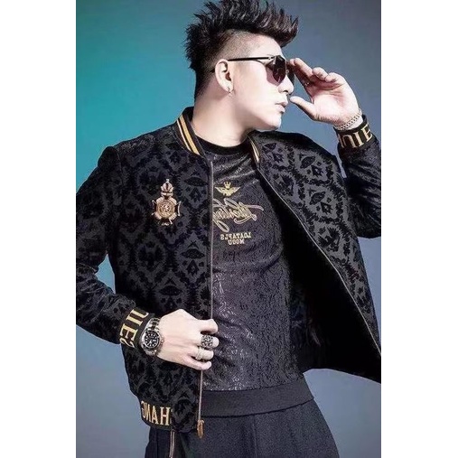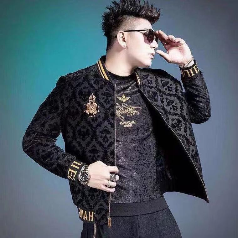 【Hot Sale】Men's jacket trendy brand new embroidered jacket outerwear slim fitting jacquard jacket