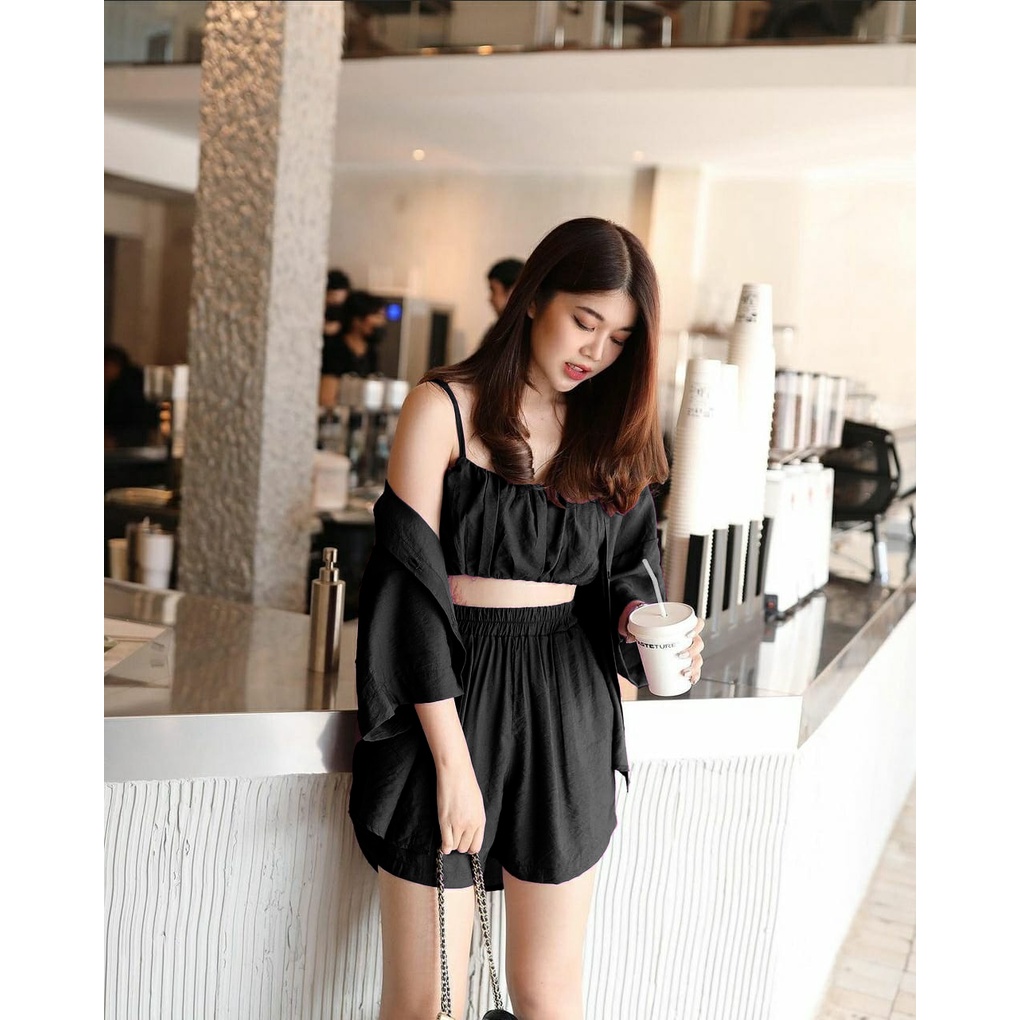 3IN1 SET Oversized Kemeja Wanita Kemben Celana Korean Style