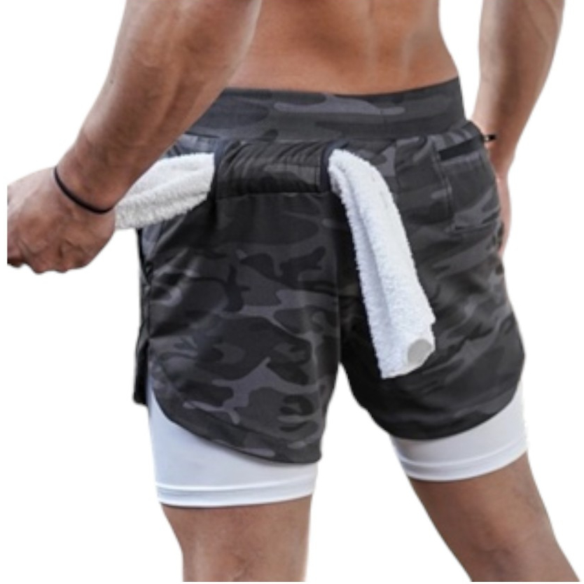 Celana Pendek Sport Kompresi Pria/Celana Pendek 2in1 Olahraga Gym Boxing Bersepeda Jogging