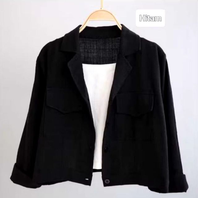 Kemeja her Wanita Linen Kantong Depan Basic Shirt / Kemeja Crop Top Wanita Lengan Panjang Korean Style