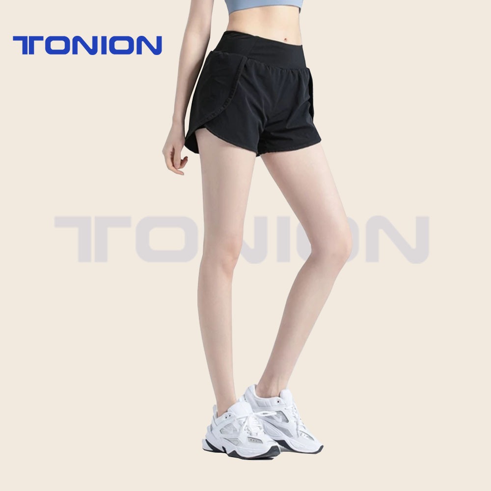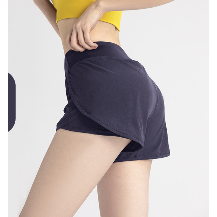 Pendek Celana 2 in 1 Olahraga Legging Wanita Pakaian High Waist Polos Bersepeda Yoga Running Sport Fitness