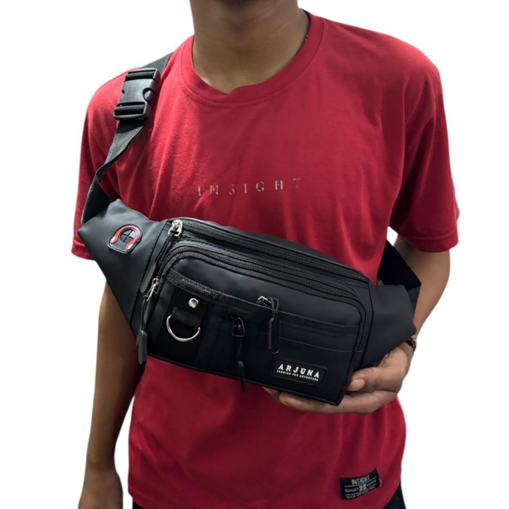 Tas Selempang Pria Waistbag Slingbag Tas Pinggang Multifungsi Bahan PU Balon Waterproof Anti Air Terkini