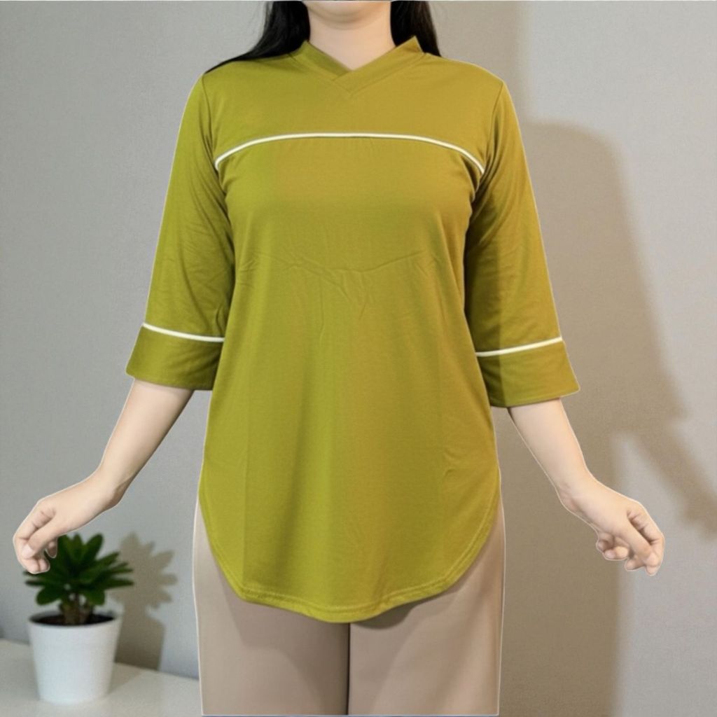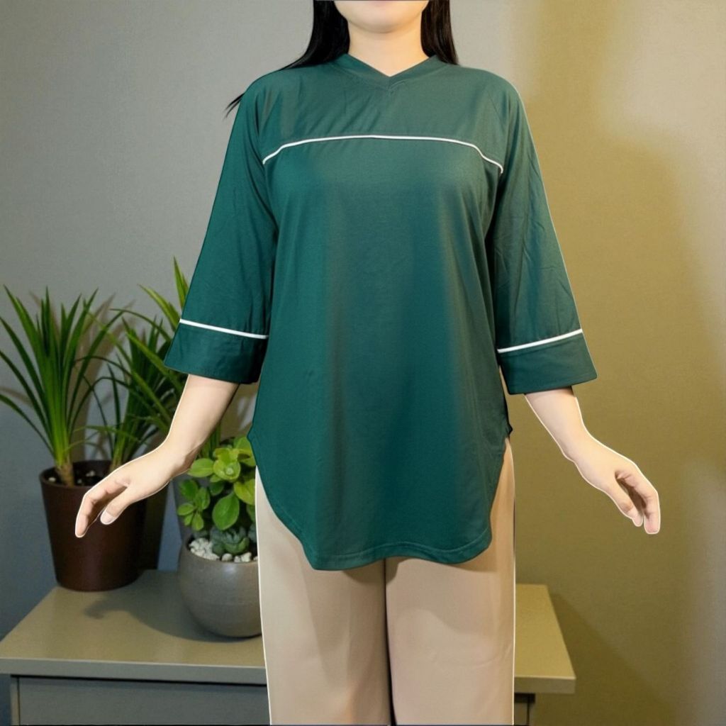 Atasan Wanita Lengan 7/8 Garis-Garis Oval
