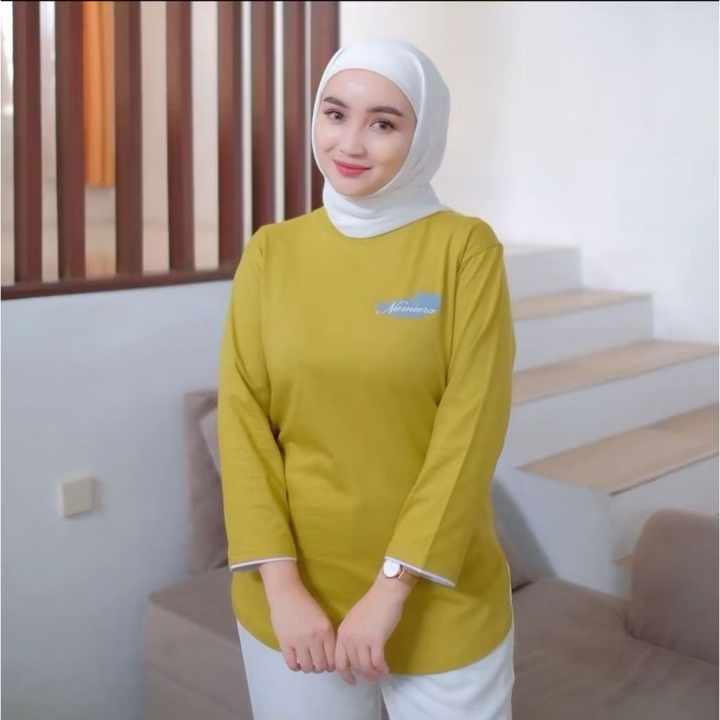GSTORE || NAMEERA BAJU WANITA LENGAN PENDEK 7/8 || MOTIF BULU || BAHAN COTTON COMBAD 20s PREMIUM