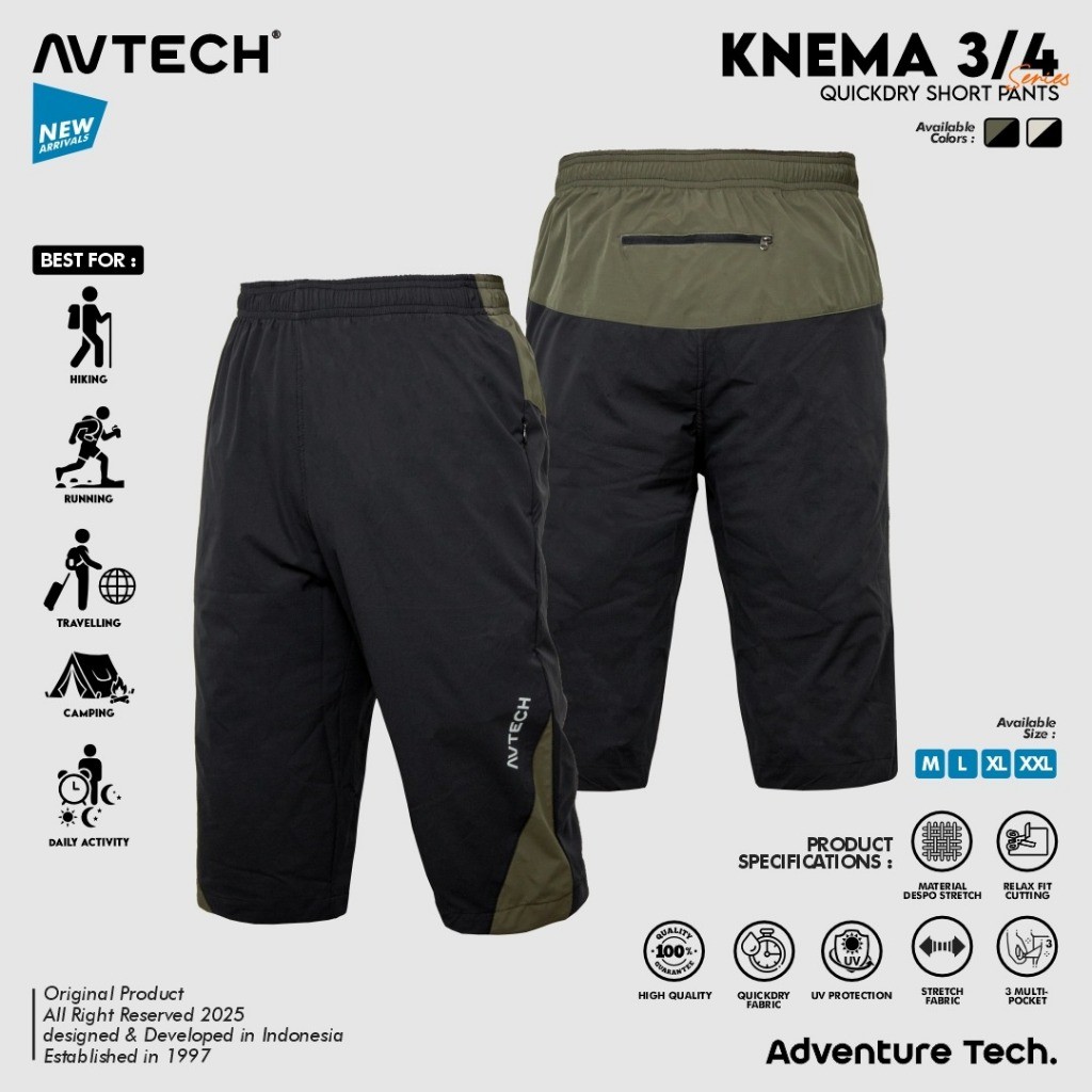 AVTECH - Celana Pendek 3/4 Pria Wanita Olahraga Running Jogging Trekking Outdoor Quickdry - KNEMA