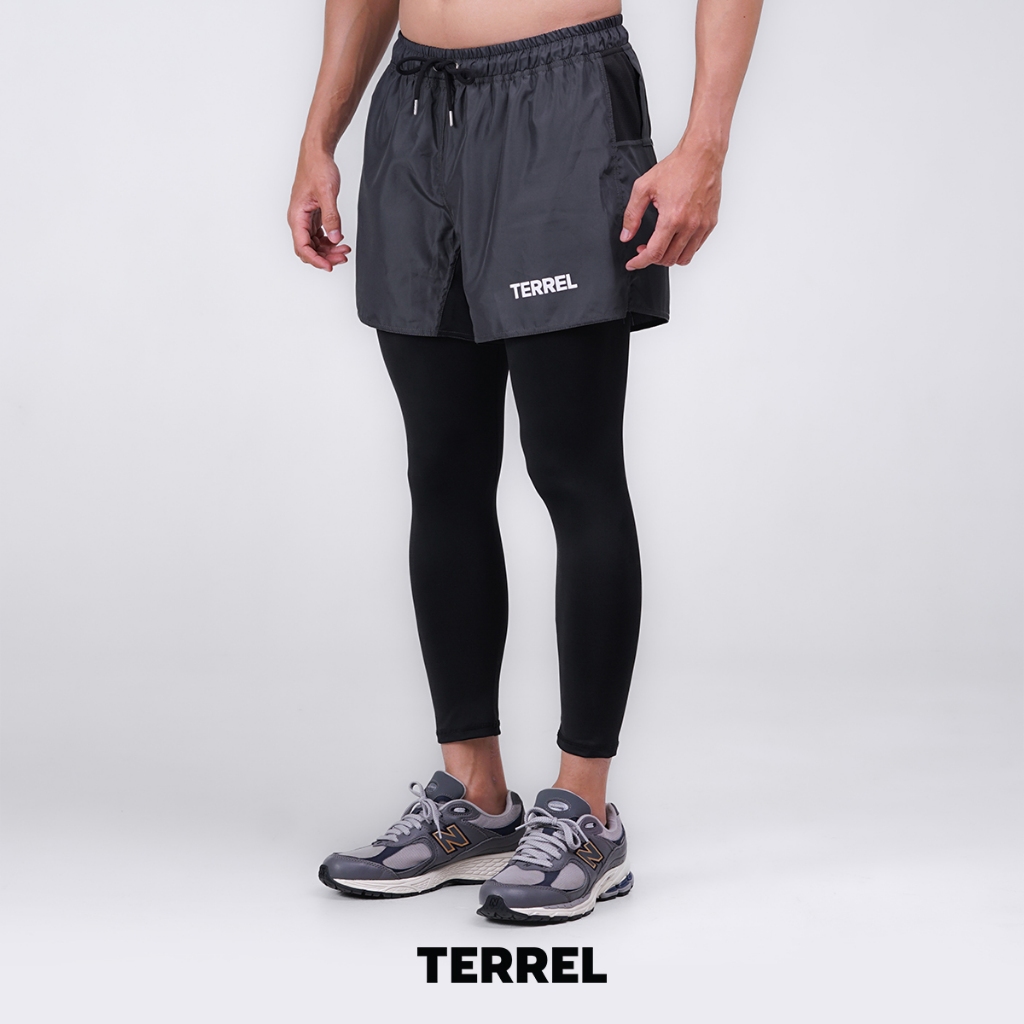 Terrel sportswear Compression Short Active Dark Grey Celana olahraga panjang gym running lari pria