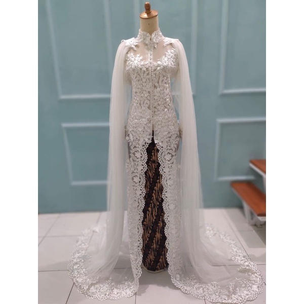 gaun pengantin ekor panjang/gaun pengantin kancing depan/gaun BUSUI/gaun pengantin wanita/Kebaya akad nikah