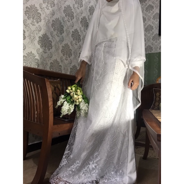 [SATU SET] GAMIS AKAD WALIMAH GAUN PENGANTIN MURAH LENGKAP JILBAB DAN SLAYER