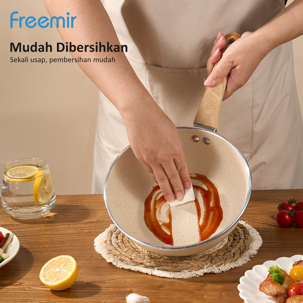 freemir Sauce Pan Beige Series 20cm Induksi Bottom Wajan Anti Lengket Serbaguna Foodgrade