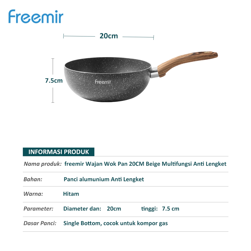 freemir Panci 20 CM Wajan Panci Serbaguna Single Bottom Panci Warna Hitam
