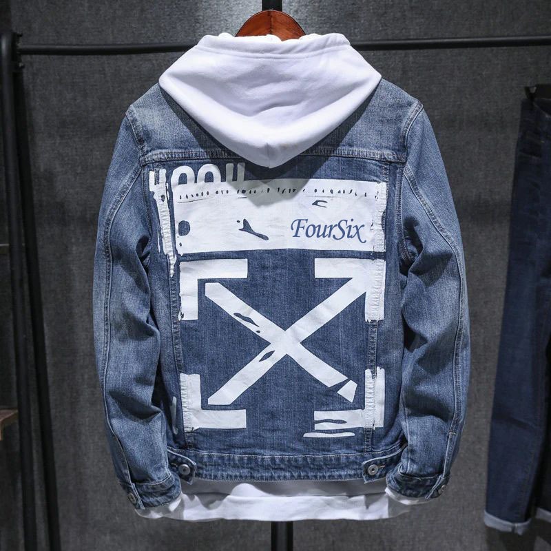 () Jaket Jeans New el Printing Sablon DTF Bahan Denim Jaket Pria Casual size M/L/XL/XXL