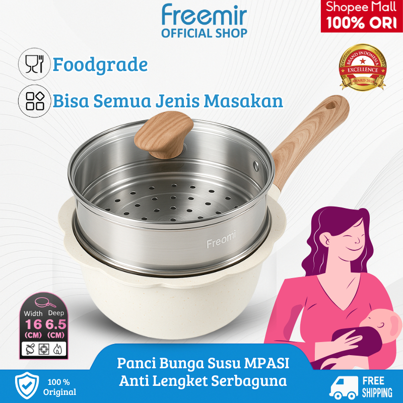 freemir Panci MPASI Bunga Sakura Pink Series 20cm Foodgrade Cocok untuk MPASI Anti Lengket