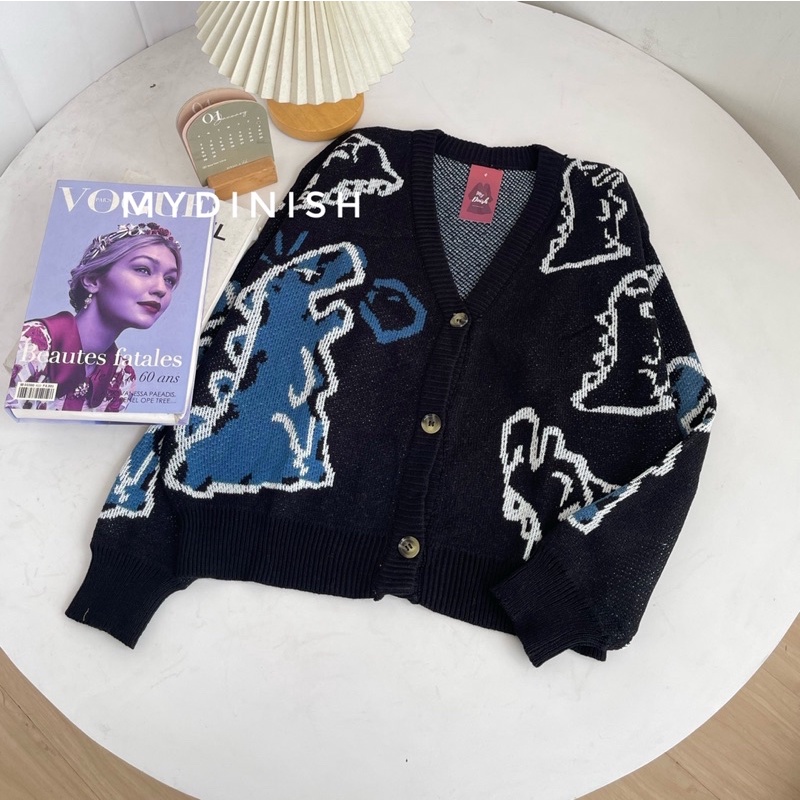 Crop Cardigan Dino - Kardigan Rajut Wanita Unisex