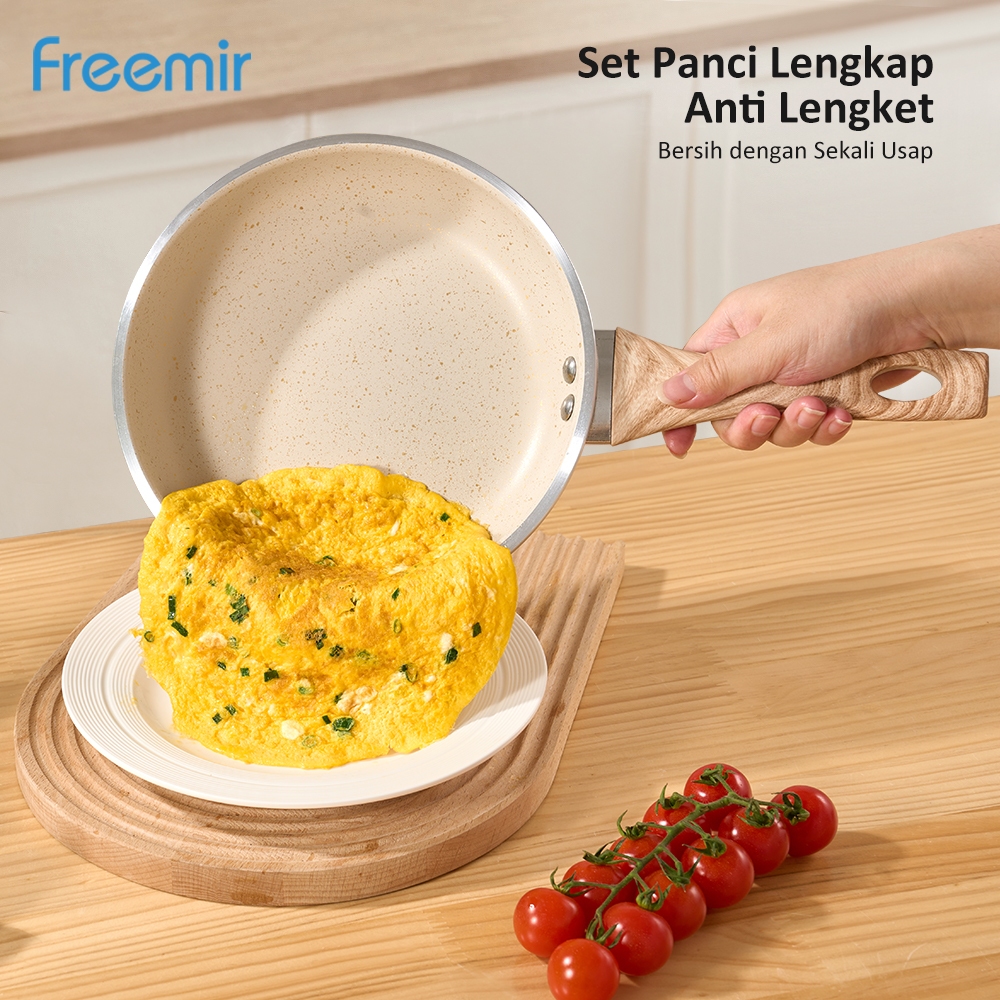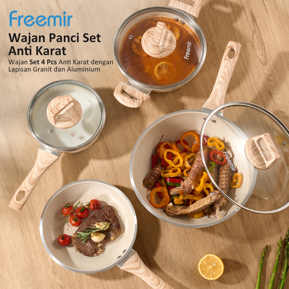 freemir Wajan Panci Set 7Pcs 26/20/20/16cm Granite Anti LengketTutup Kaca Alat Masak Lengkap