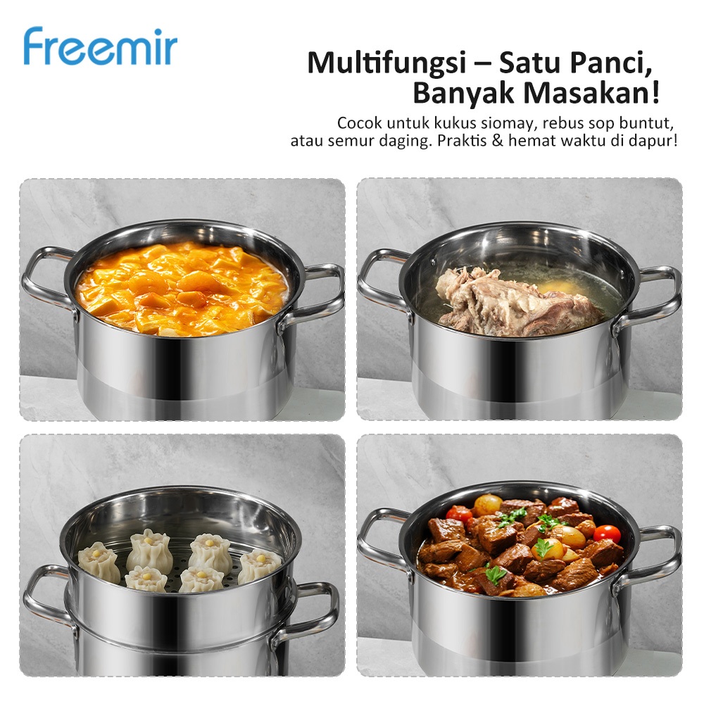 freemir Panci Sup Stainless steel 304 Double Bottom 26cm Goreng Rebus Premium 0-Coating