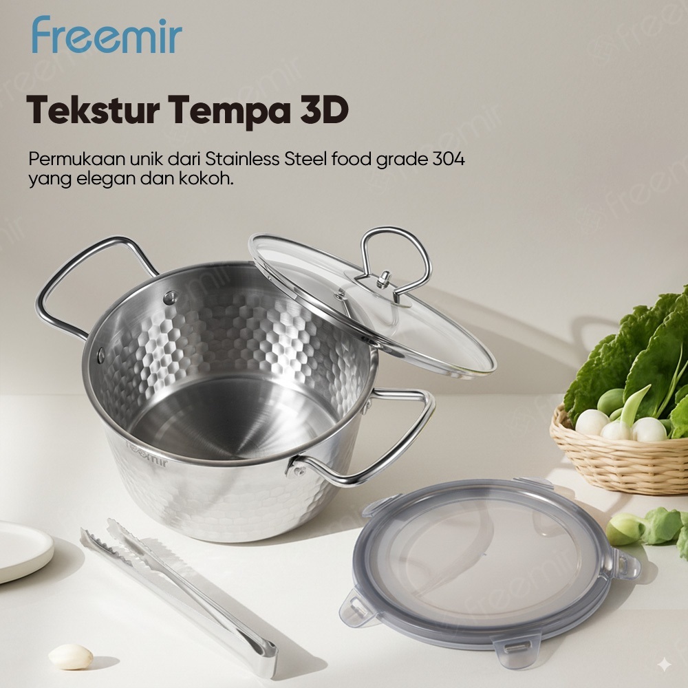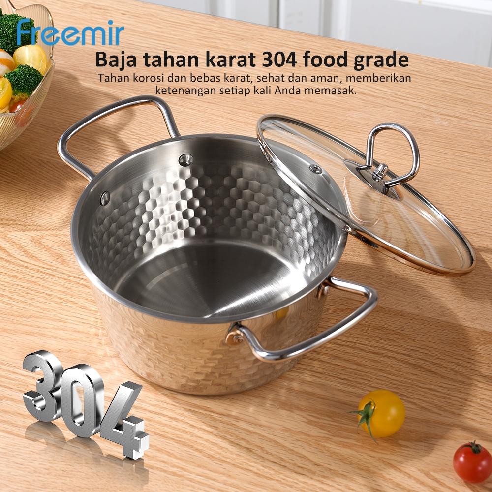 freemir Panci Susu Stainless 304 Food Grade Anti Karat dengan Tutup Silikon Kedap Udara panci mie rebus