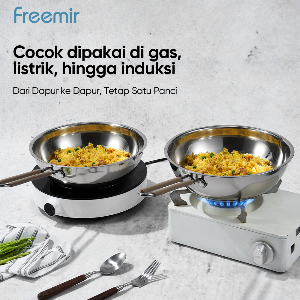 freemir Wajan Stainless Set Serie API SUS304 Induksi Bottom Anti Karat Panas Cepat Merata