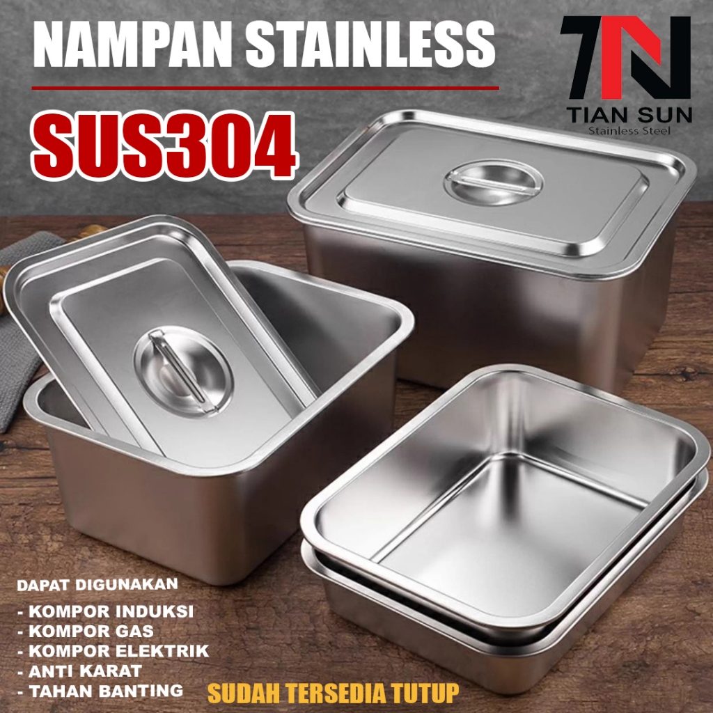 Tian Sun NAMPAN STAINLESS SUS304 PERSEGI ANTI KARAT - TEMPAT TATAKAN SAJI SERBAGUNA STAINLESS STEEL