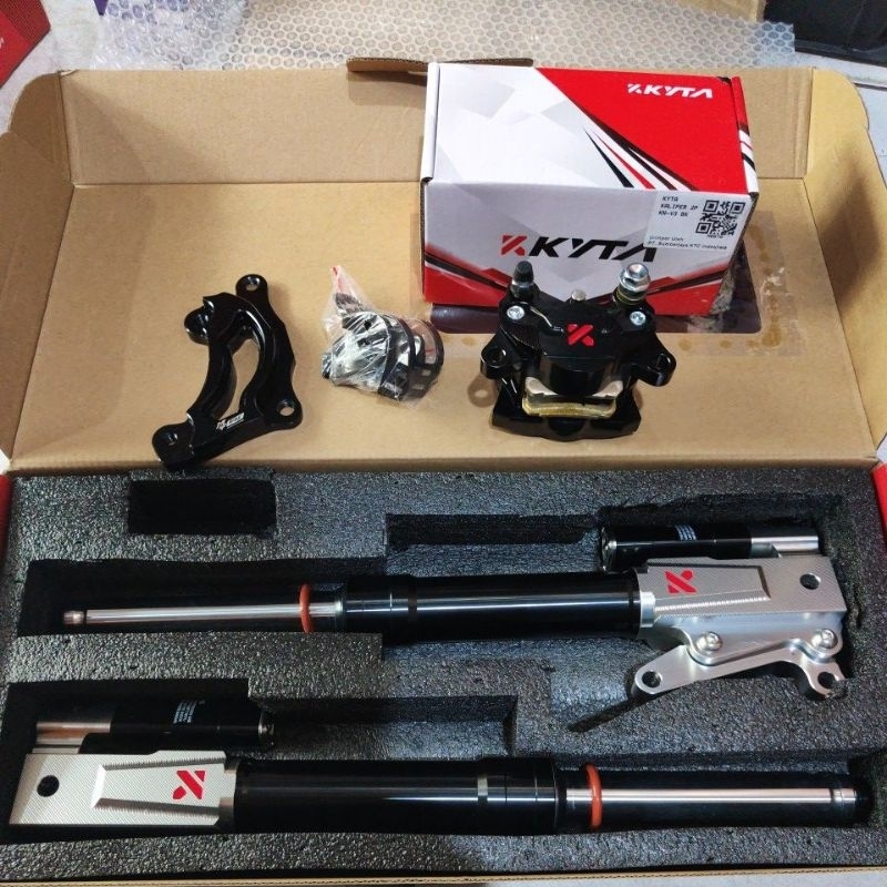 shock depan ktc kytaco suspension depan ktc kytaco logo baru K KYTA plus kaliper 2p besar plus breket bubut baut ke disc