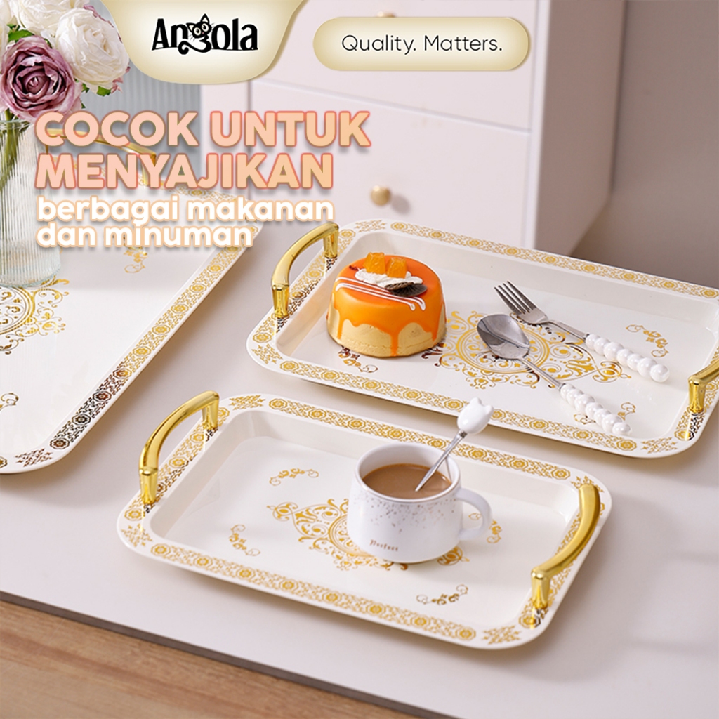ANGOLA Set Nampan Saji Makanan Buah Lauk Camilan C26 dengan Tutup Nampan Mewah Handle Gold