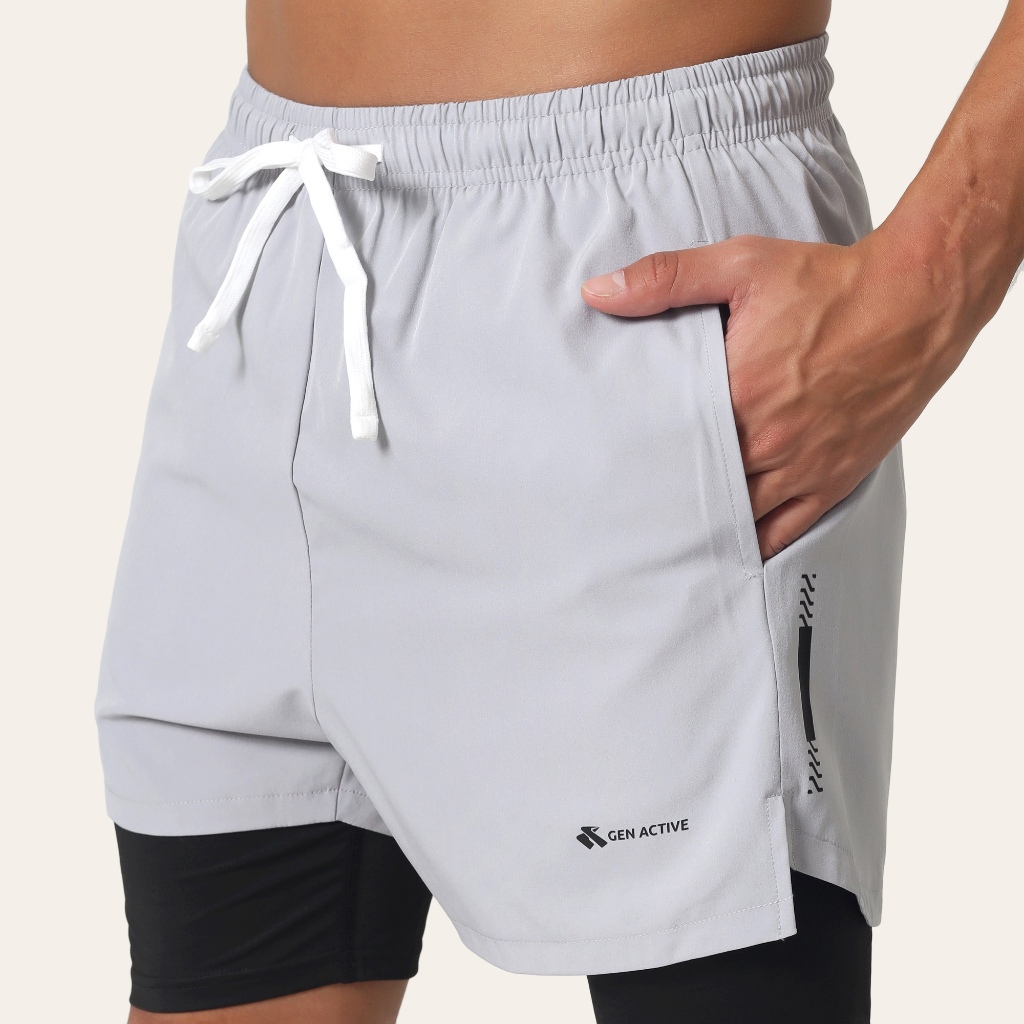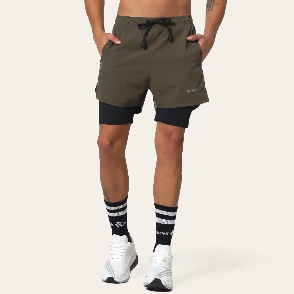 Gen Active Celana Short Olahraga Pria 2in1 Compression Baselayer Quick Dry Running Gym Padel Kasual