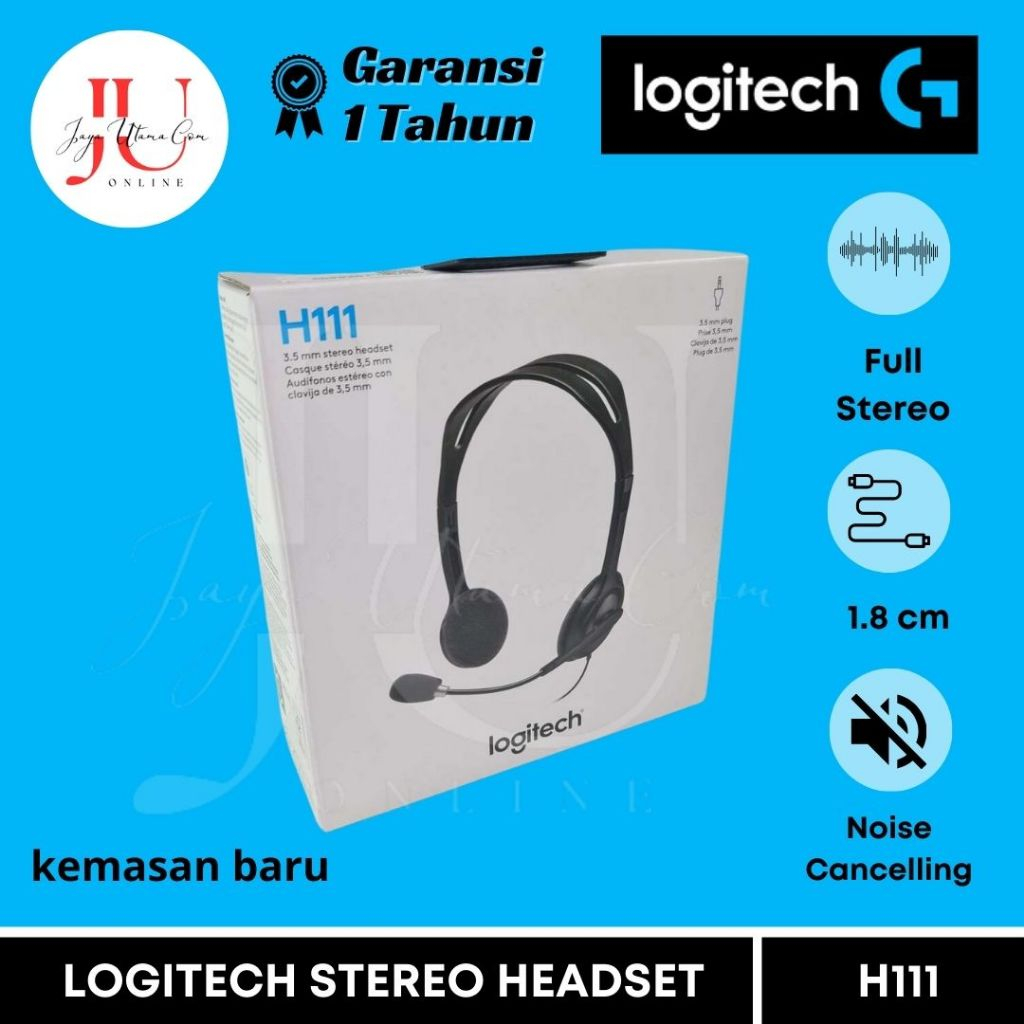 HEADSET LOGITECH H111 STEREO 3.5MM – MIC UNTUK LAPTOP, HP, ZOOM, MEET – GARANSI RESMI
