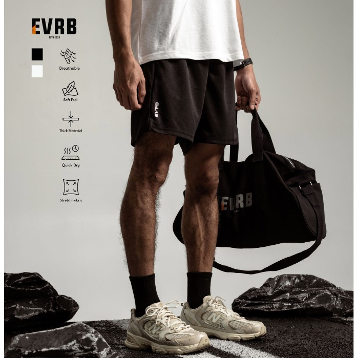EVRB Celana Pendek Training Initial Logo Size M-XL Running Shorts Polymesh Dryfit