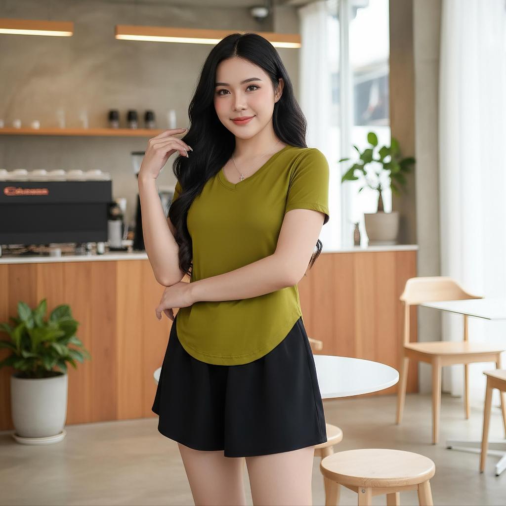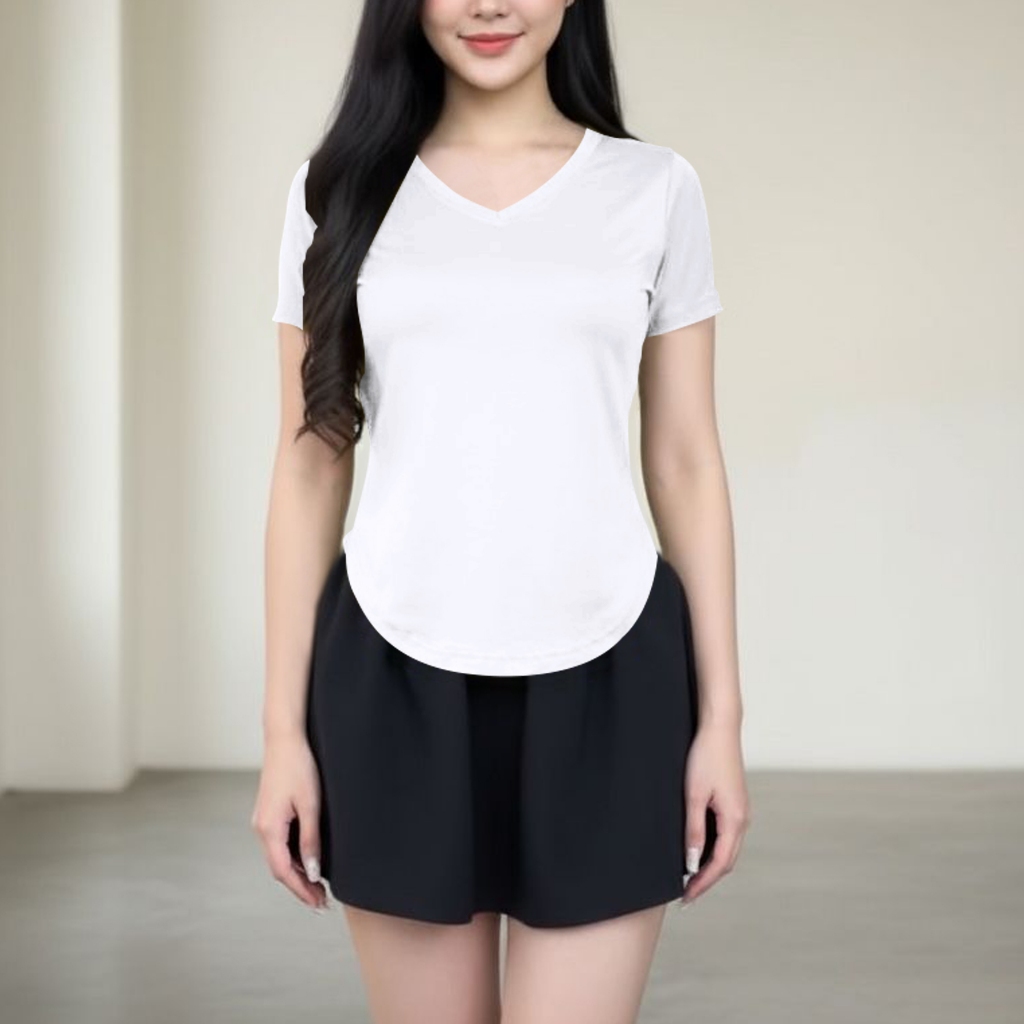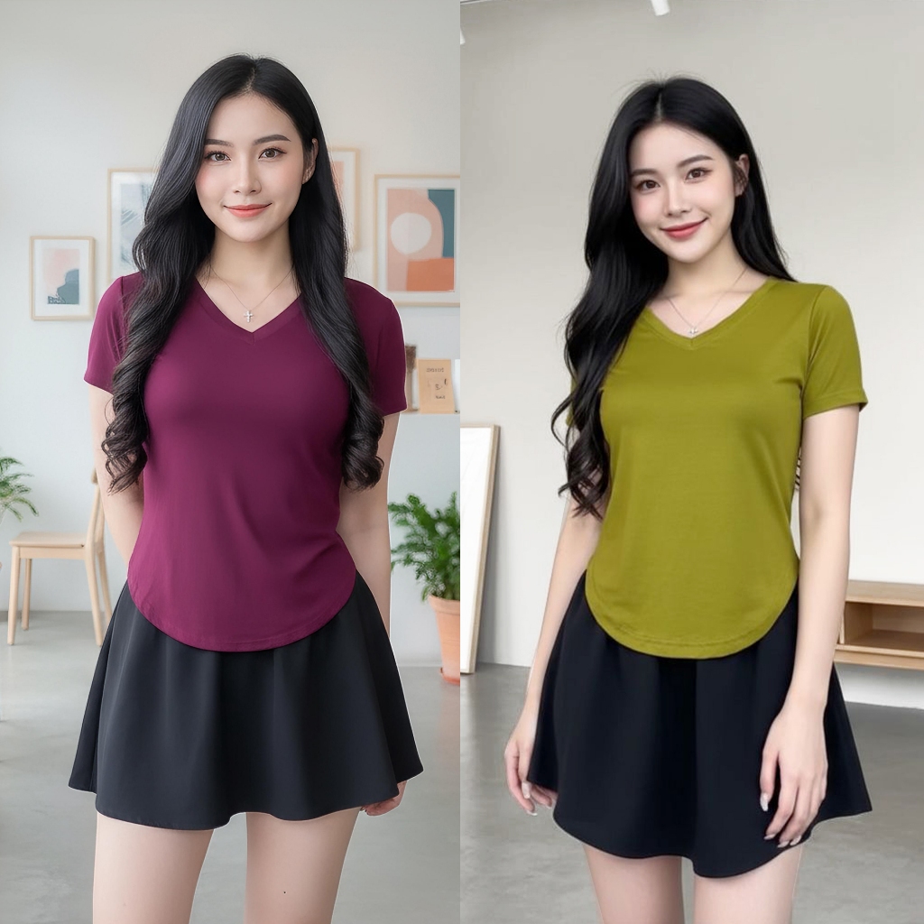 Kaos Wanita Polos Vneck Lengan Pendek/Spandek Rayon 100% Lembut Dan Adem